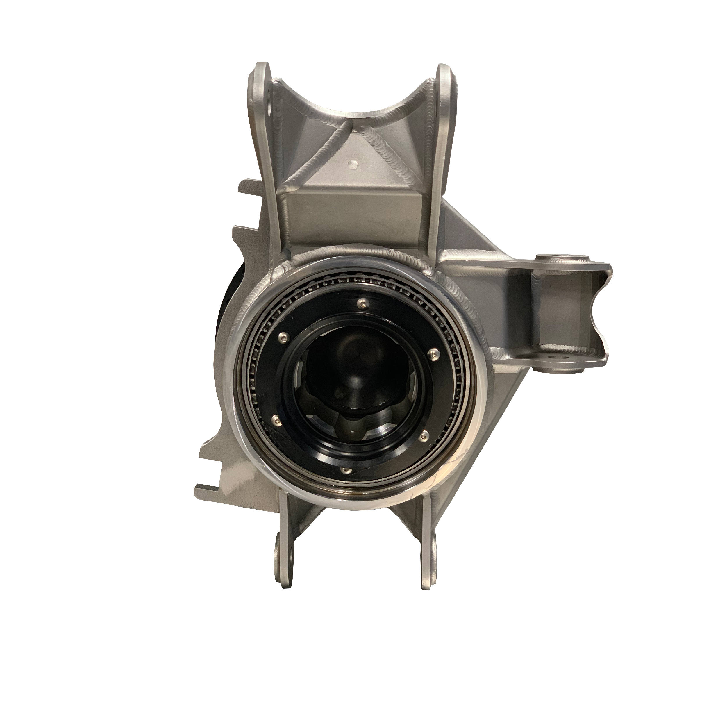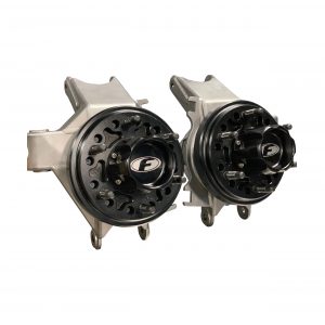 PART # N/AAWD Trophy Truck front hub and upright assembly with 6 on 6.5” wheel stud pattern. 4130 bearing housing is provided to the car builder/fabricator to weld on upper and lower ball joint mounts and steering mounts. The upright is then stress relieved and heat treated before Fortin Racing machines the bearing bores. Included in the package are two Fortin high angle non plunging cv joints. The 6061-T6 wheel hat is hard anodized and accepts StopTech, Alcon, Coleman and Brembo brake rotors.